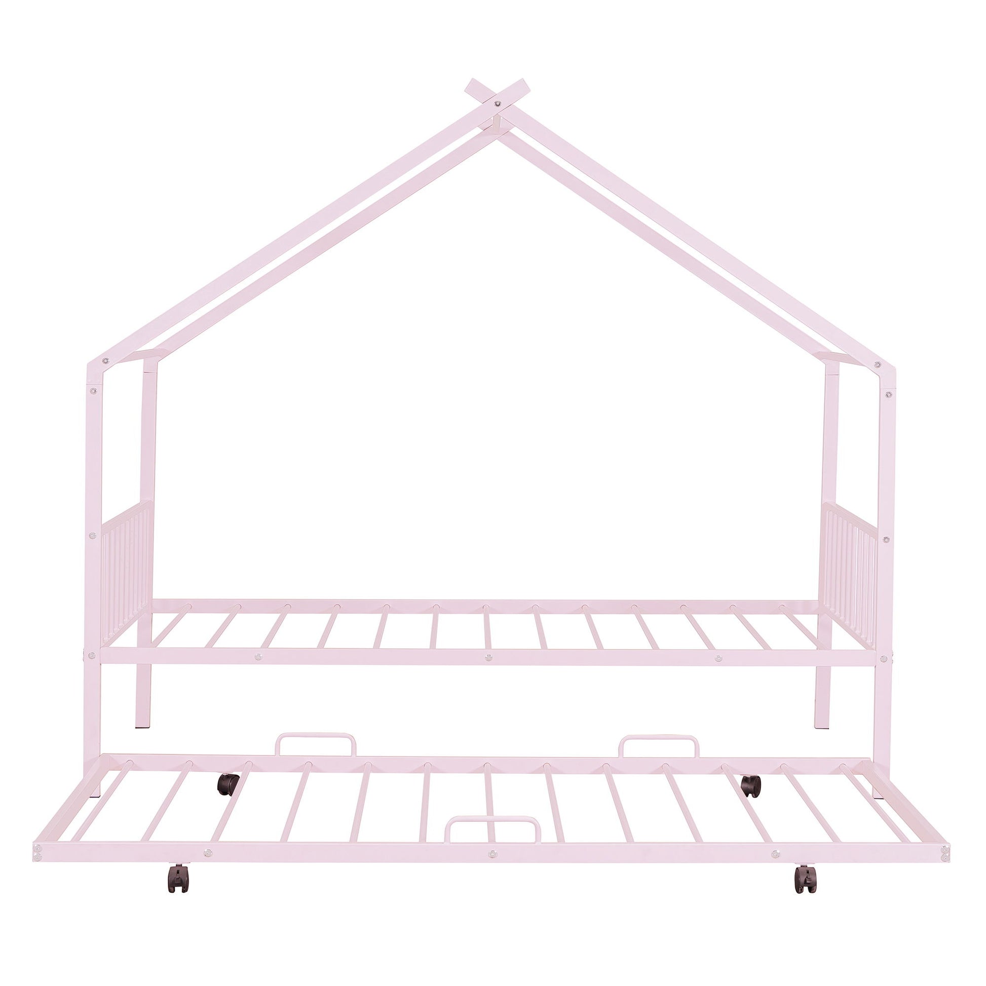 Twin Size House Bed With Twin Size Trundle - Pink