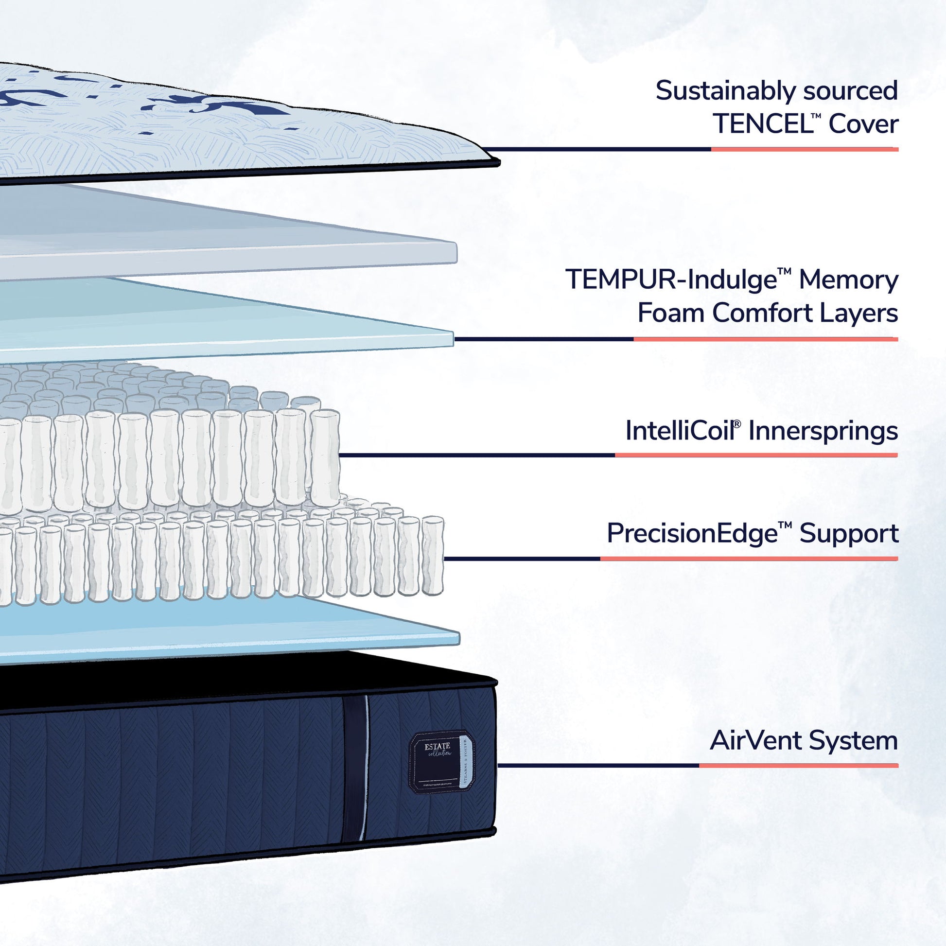 Our Stearns & Foster Estate Collection takes comfort to the next level featuring our TEMPUR-Indulge™ Memory Foam for enhanced pressure relief and our exclusive IntelliCoil innersprings for added support—all night long.